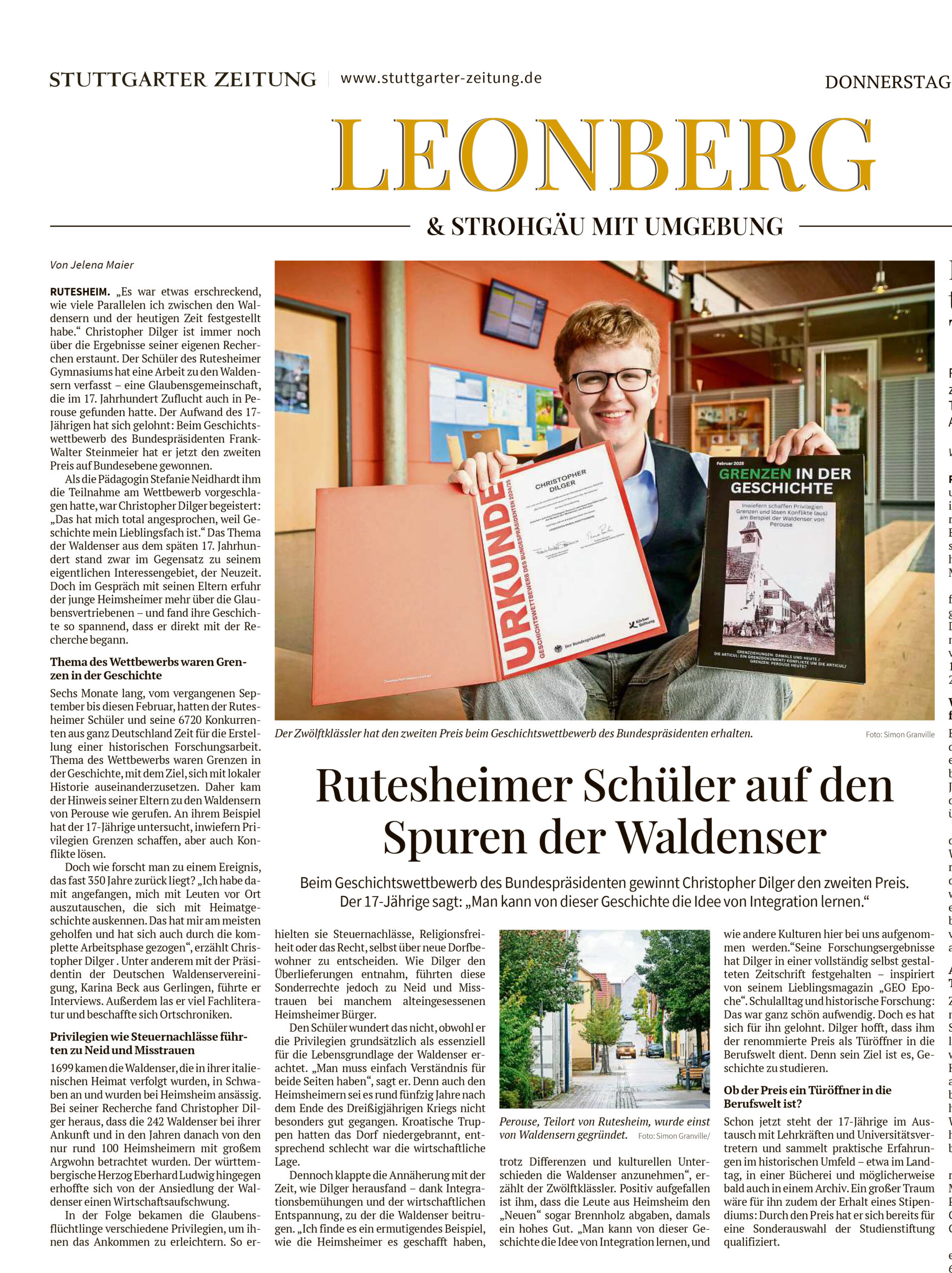 Rutesheimer Schüler auf den Spuren der Waldenser