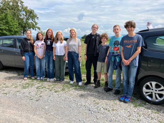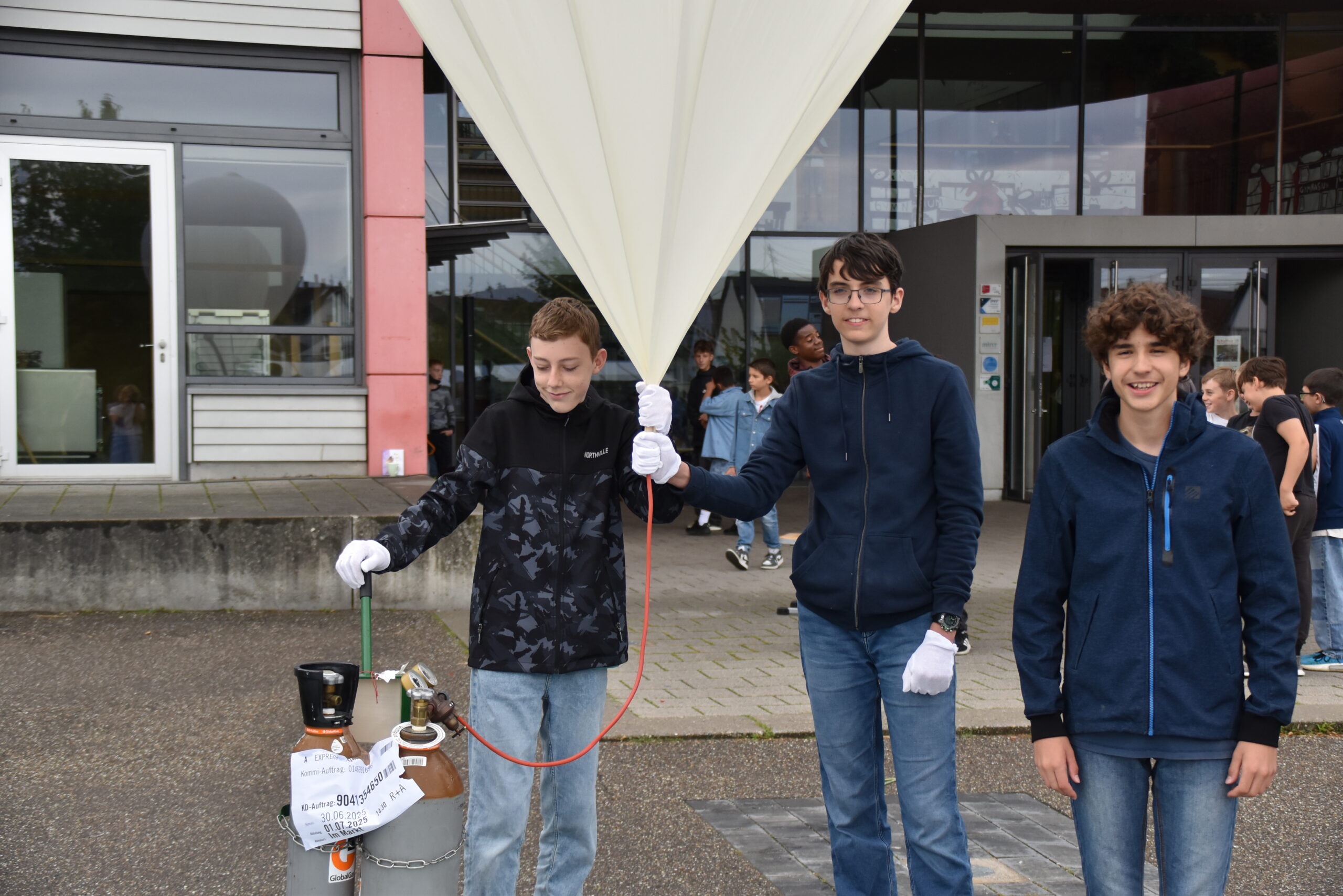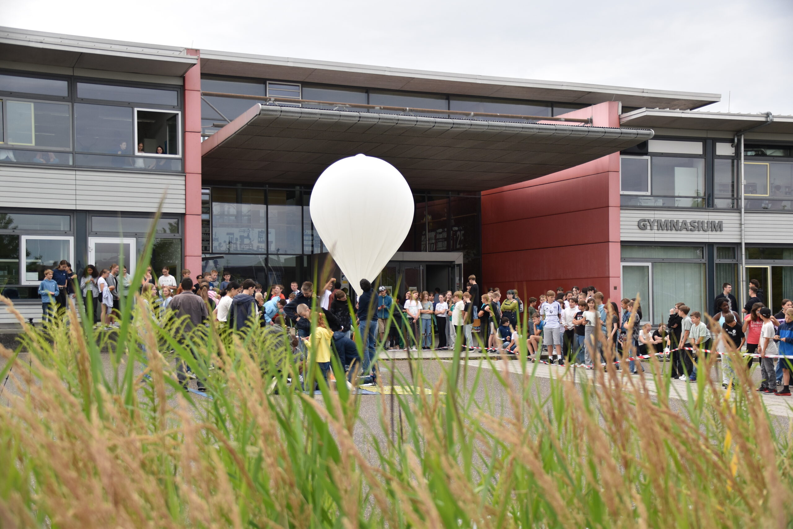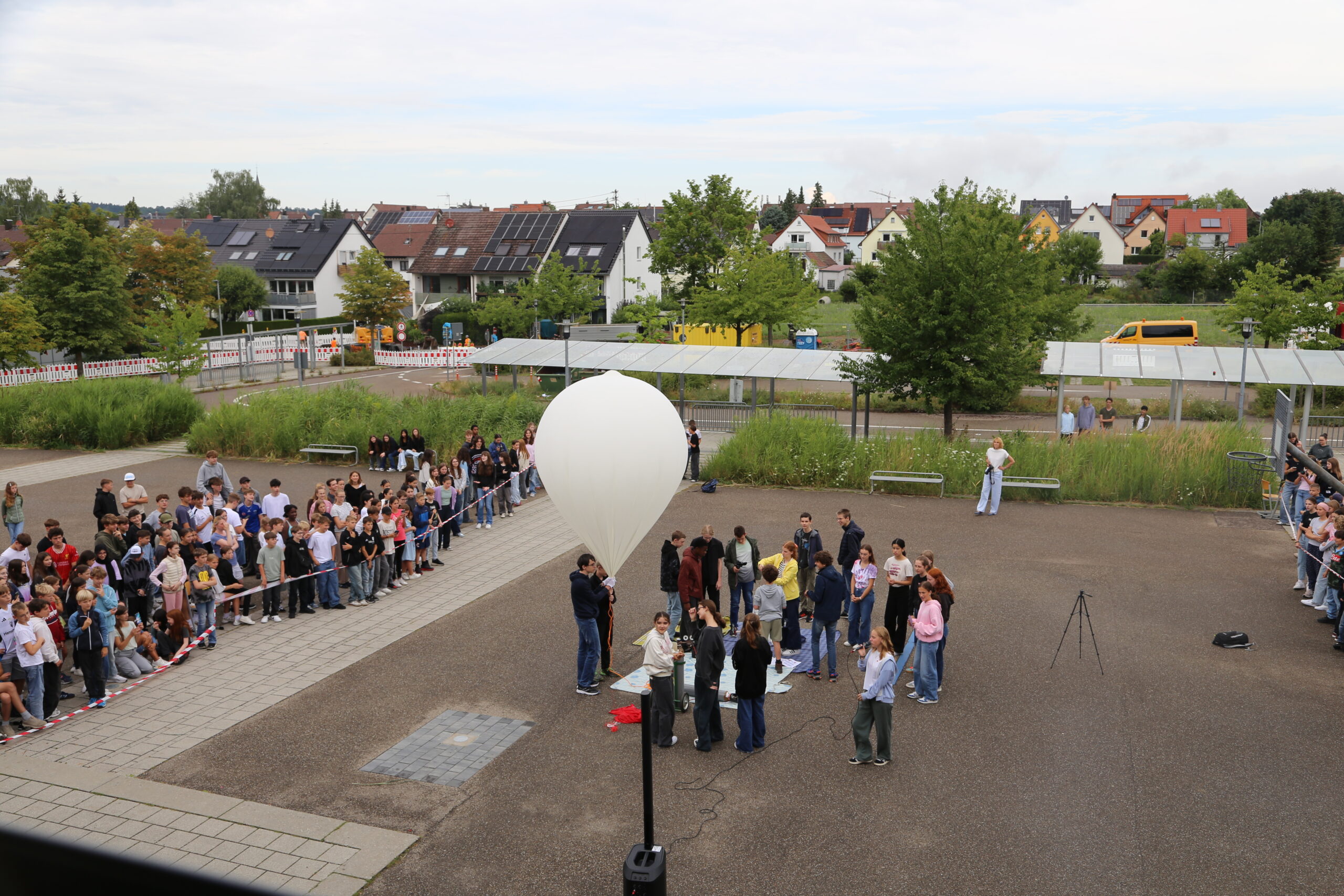 der Wetterballon steigt vor dem Gymnasium Rutesheim in die Luft