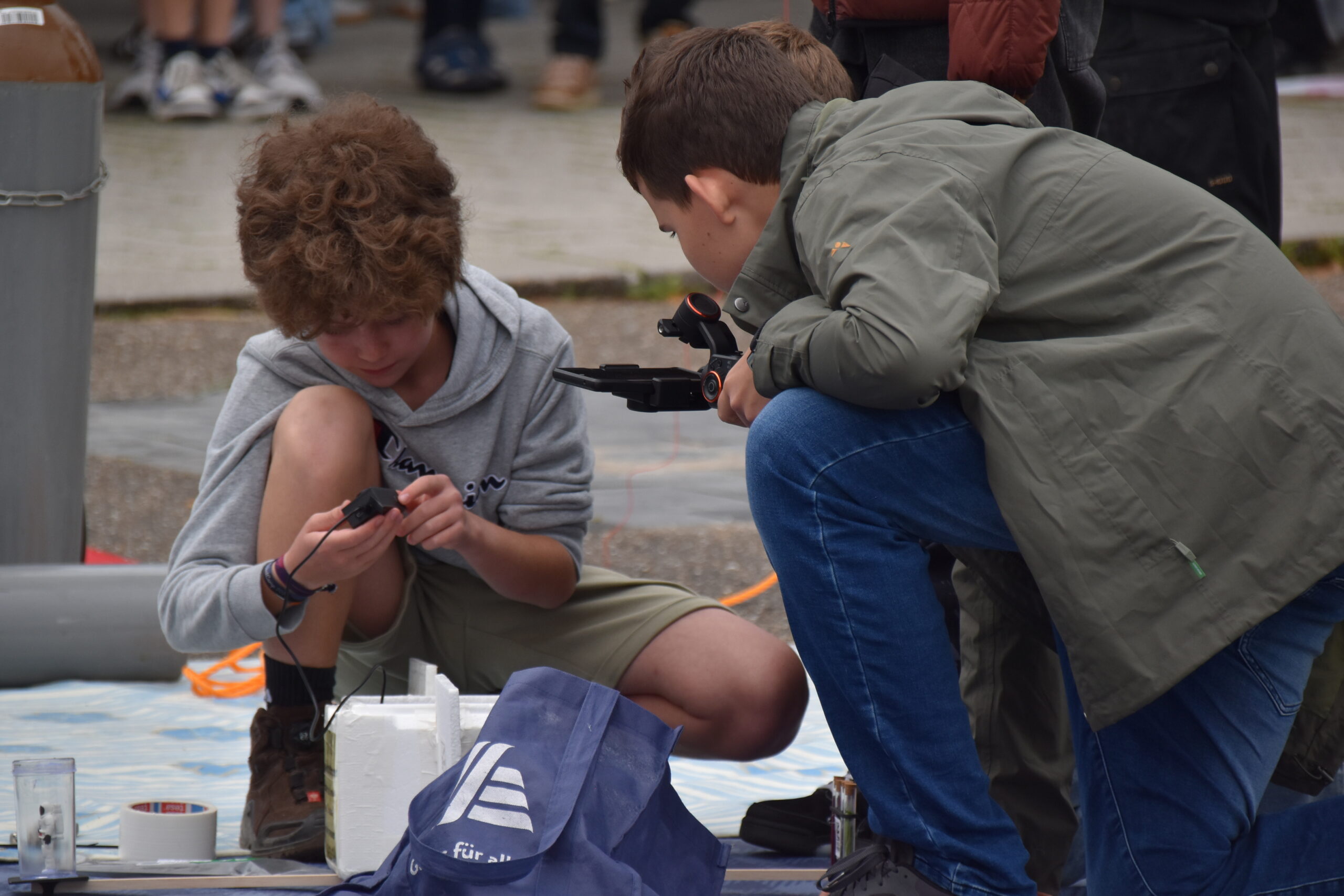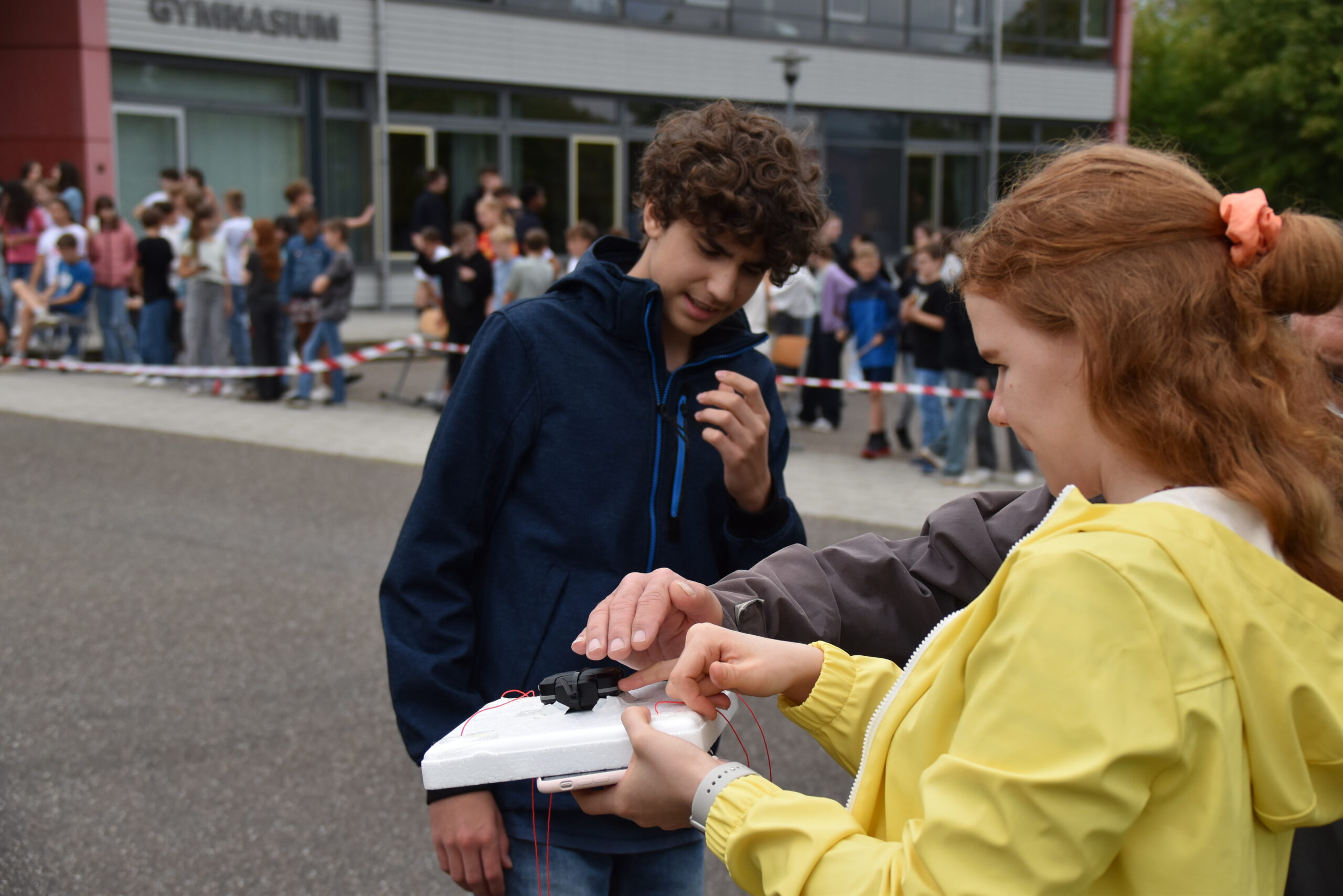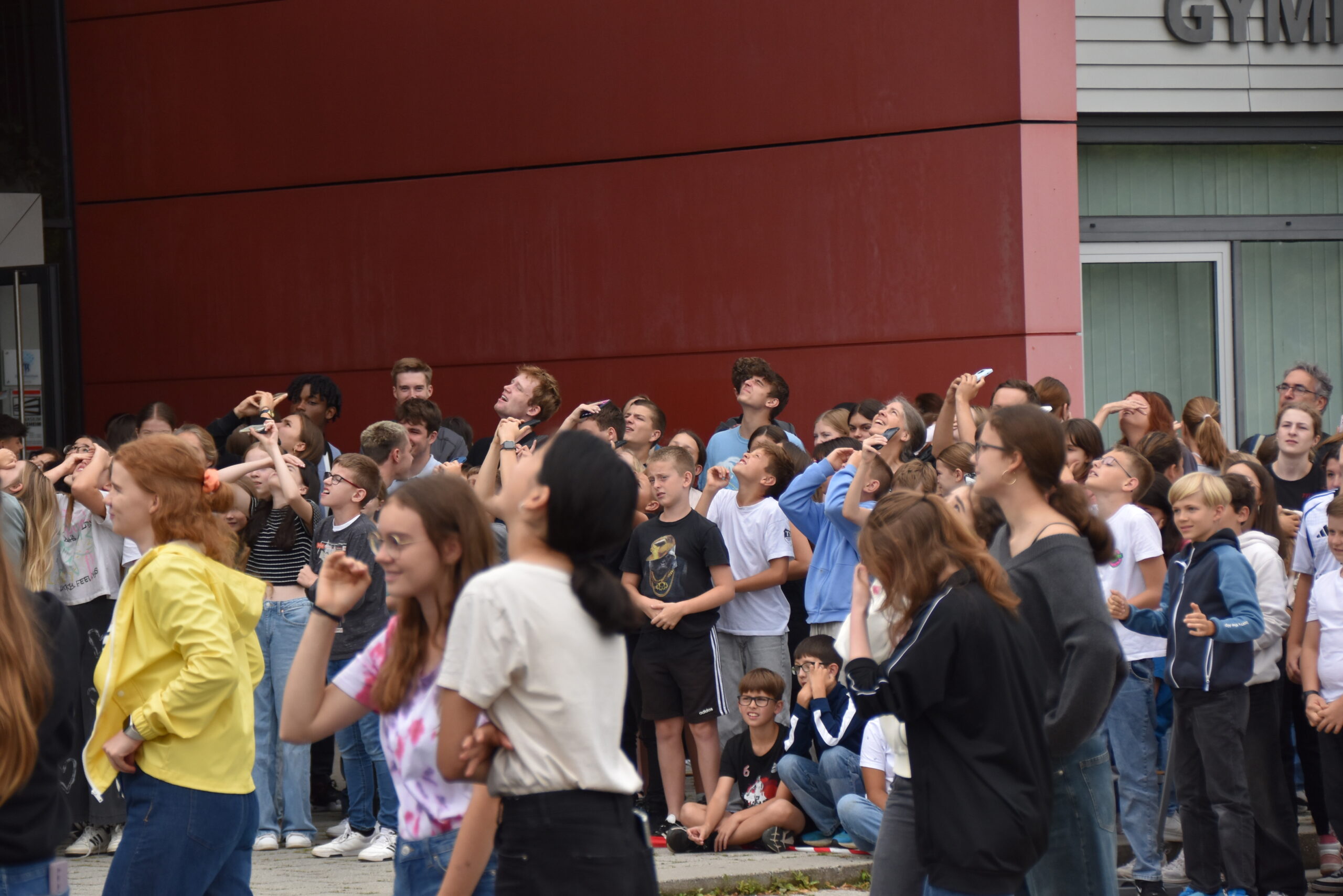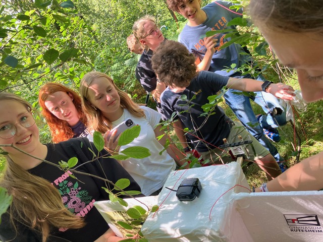 der Wetterballon steigt vor dem Gymnasium Rutesheim in die Luft