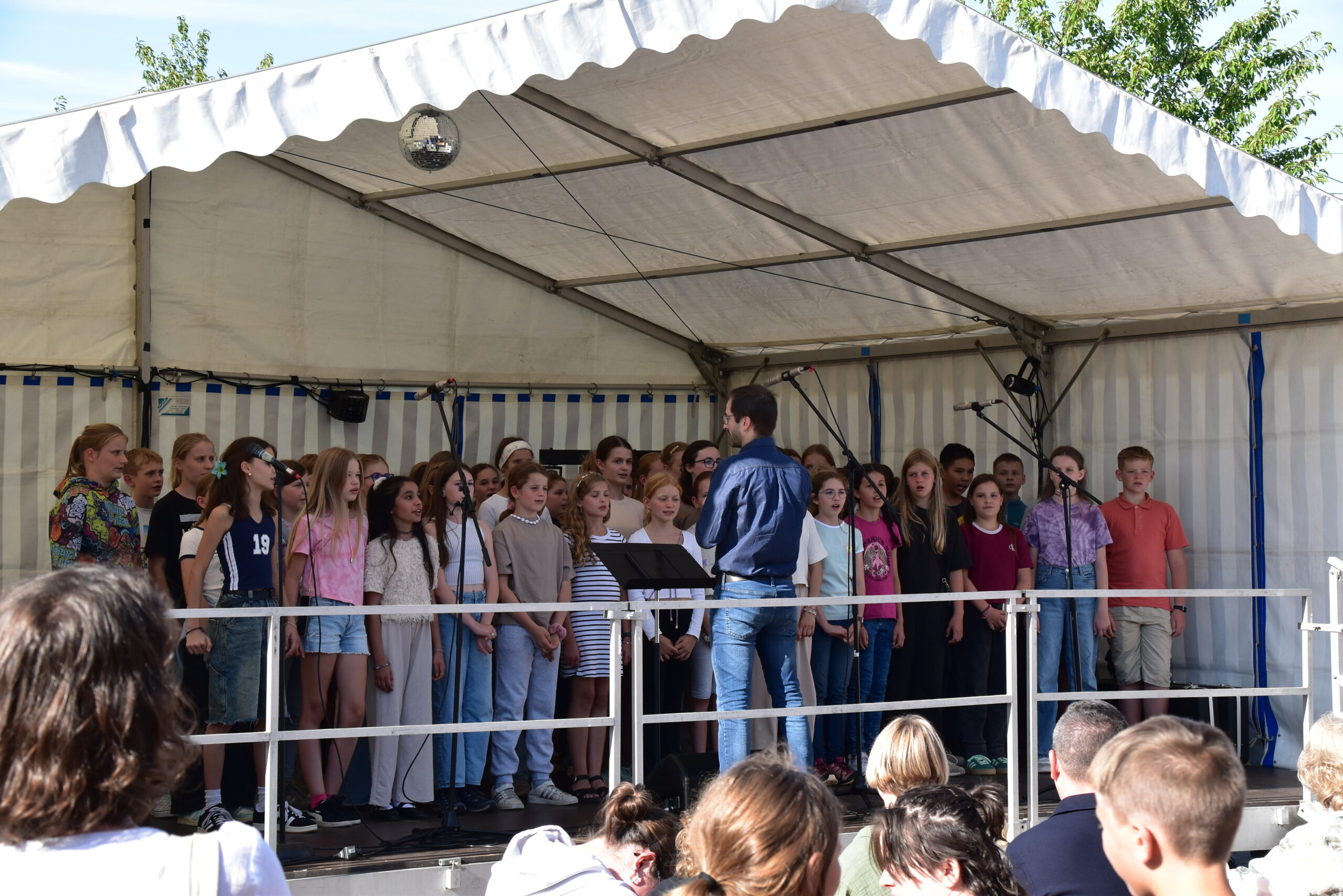Auch an diesem Nachmittag und frühen Abend traten sie auf und sorgten für gute Stimmung: die Big Band, die Unterstufenband und die Chöre zusammen mit dem Eltern-Lehrer-Chor.