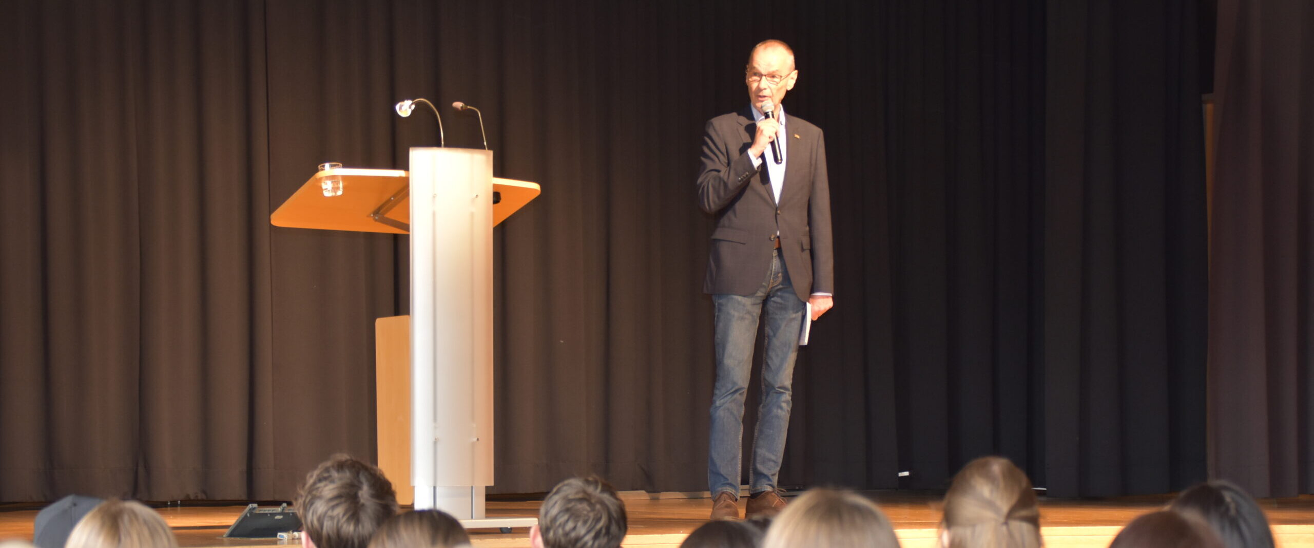 Zum Auftakt der diesjährigen Austauschrunde besuchte der Landtagsabgeordnete Hans Dieter Scheerer (FDP) die Jugendlichen und hielt am Montag, 13. Okotber 2025 einen Vortrag zum Thema Europa und Rutesheim. Mit seinem Slogan, „der richtige Mann zur richtigen Zeit“, machte er Werbung für die EU und aktuelle politische Themen. Aus seiner Jugendzeit konnte Herr Scheerer berichten, dass er als einer der wenigen zu einem einjährigen Austausch in die USA aufbrach und er es als tolle Entwicklung sieht, dass nun jeder die Chance hat, in der EU unterwegs zu sein.
