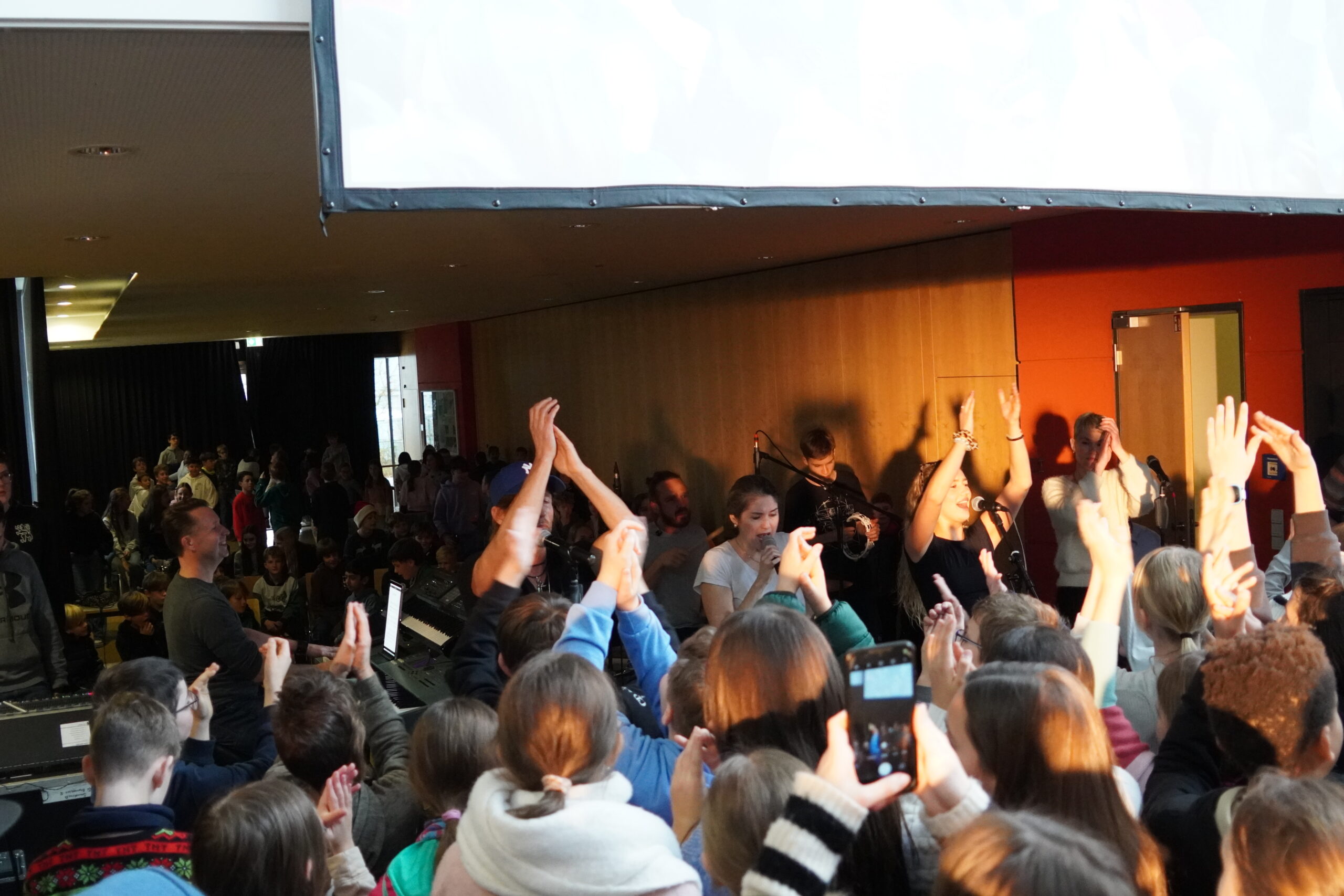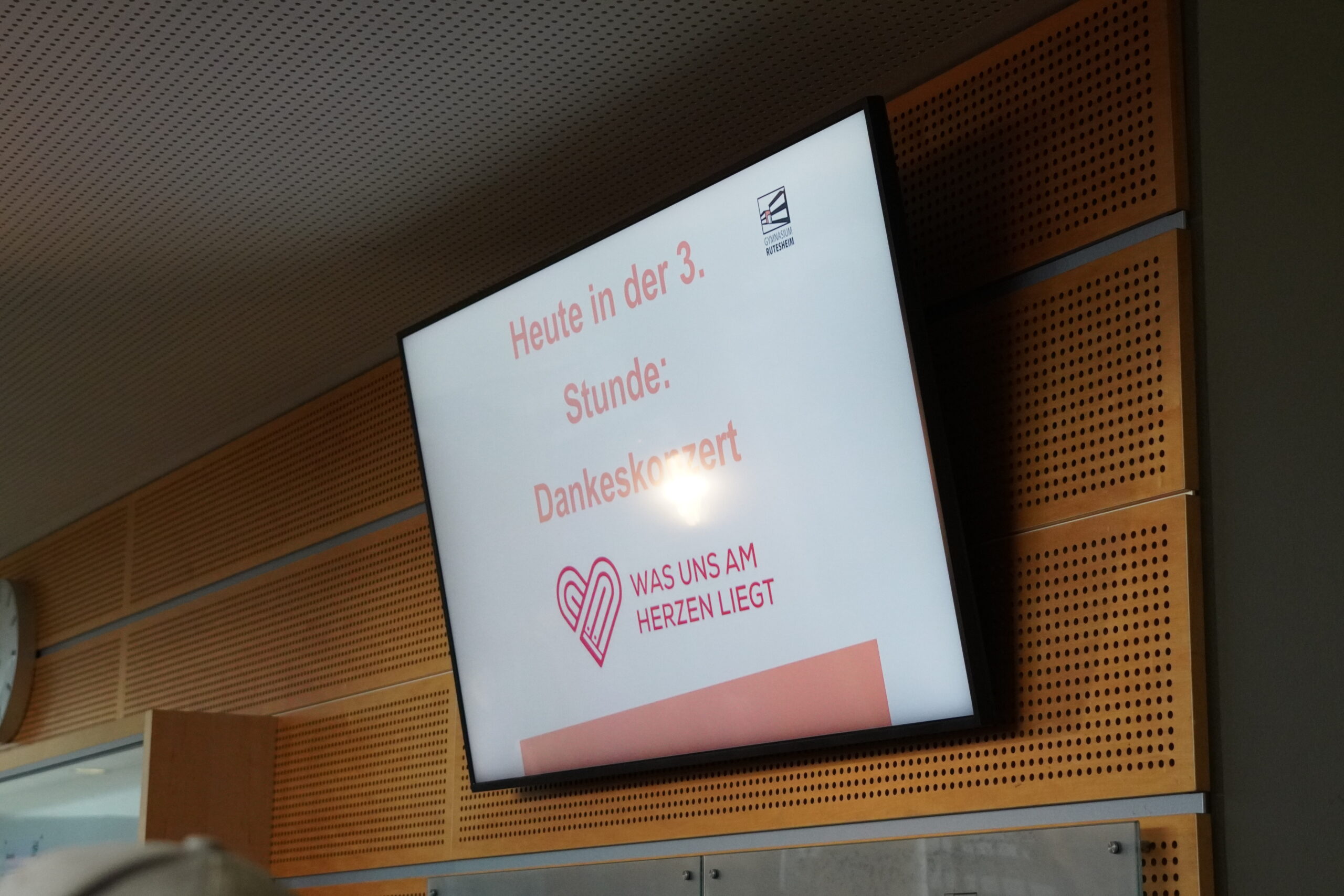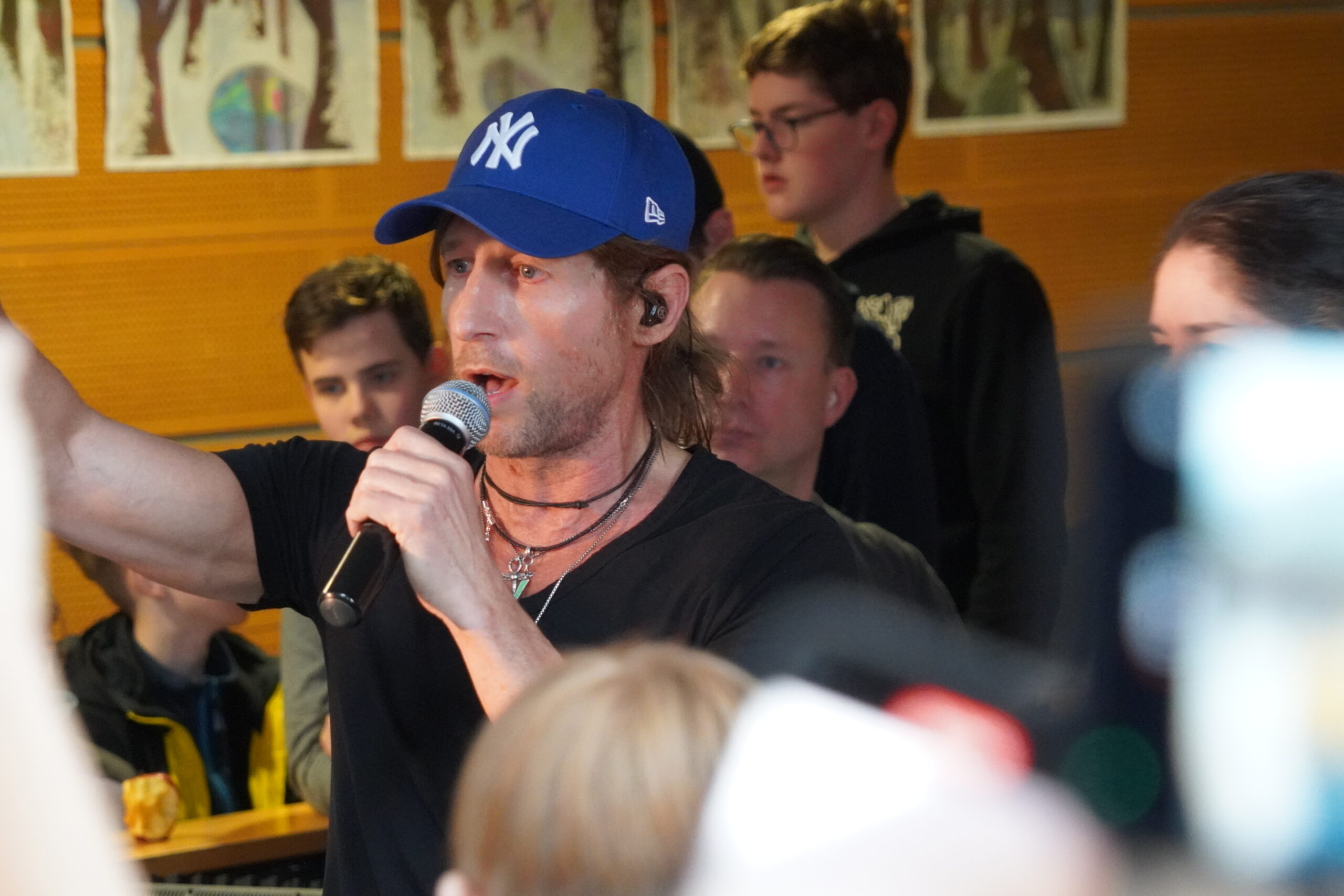 Zum Dank für die tolle Spendenbereitschaft des Gymnasiums Rutesheim und das langjährige Engagment der SMV für den Verein WUAHL (der sich für das Projekt HOPPS am Olgahospital in Stuttgart einsetzt) kamen Musikerinnen und Musiker von WUAHL für ein Dankeskonzert ans Gymnasium Rutesheim. Mit ihren letzten Aktionen konnte die SMV unglaubliche 7.000€ für WUAHL sammeln. Der Scheck war bereits am beim großen Spendenkonzert im Oktober überreicht worden. Und nun der Dank an alle Schülerinnen und Schüler, die sich riesig über das mitreißende Konzert freuten. Über eine Stunde begeisterten die neun Musikerinnen und Musiker von WUAHL mit ihren kraftvollen Stücken und brachten die Schülerinnen und Schüler zum Tanzen, Singen und Spaß haben. Wir danken WUAHL von ganzen Herzem für diesen besonderen Vormittag und freuen uns auf ein Wiedersehen!